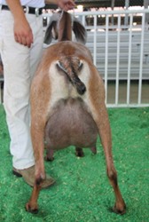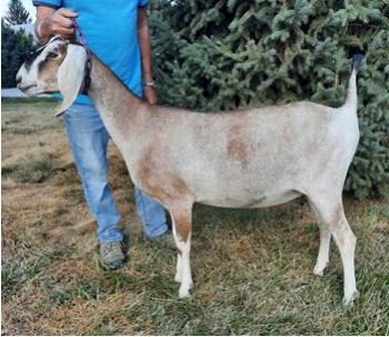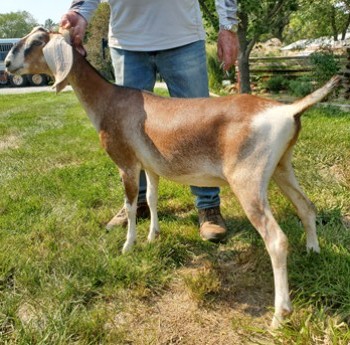 I have loved Anna from the time she was born! She did not disappoint me when she freshened this past spring. My only hope was that she be just as nice as her dam was and Anna fulfilled that wish and even more. I love the mammary system on Anna showing nice height and width in rear attachment as well as a smoothly blended fore udder. I would give her a little more angulation in the set to her rear legs, however. Anna has shown very well as a first freshening 2-year-old in 2023 and I am looking forward to seeing that mammary system as a 2nd freshener