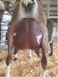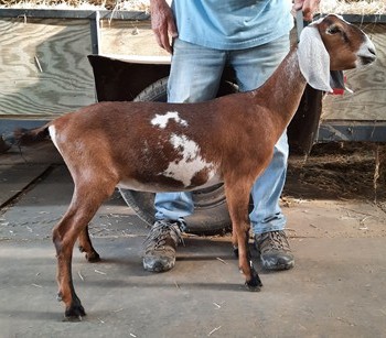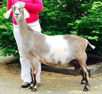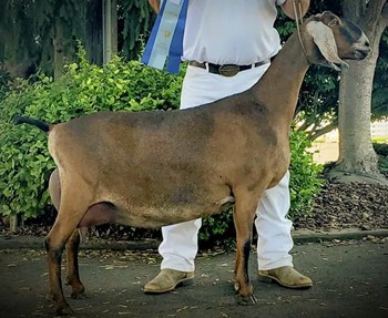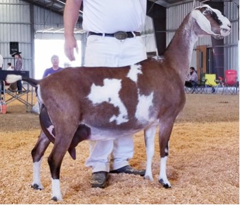 I feel so fortunate to have Riverdancer in our herd as I have waited several years to have a chance at a doeling out of her dam, Raindancer. It is exciting to note that Riverdancer’s paternal grandsire is the well known My Enchanted Acres LM Candyman who has produced some awesome daughters. Her sire’s dam is also the dam of our 4-year-old CH DKGH Full Evening Affair that won several Best In Shows and Best Udder in Shows these past couple years. Riverdancer was only shown three times this year and I feel did pretty well. She is another first freshener I am looking forward to freshening.