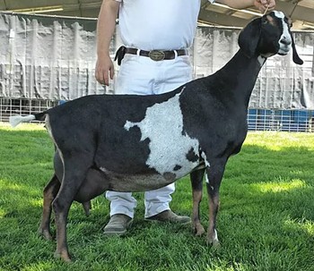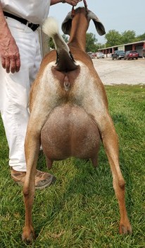 ![]() SGCH DKGH Rockin' Eve 3-03 E92(EEEE) 2nd place 4 Yr. Old with 1st Udder 2019 ADGA Natls. (Photos courtesy of Dan Greene) |
